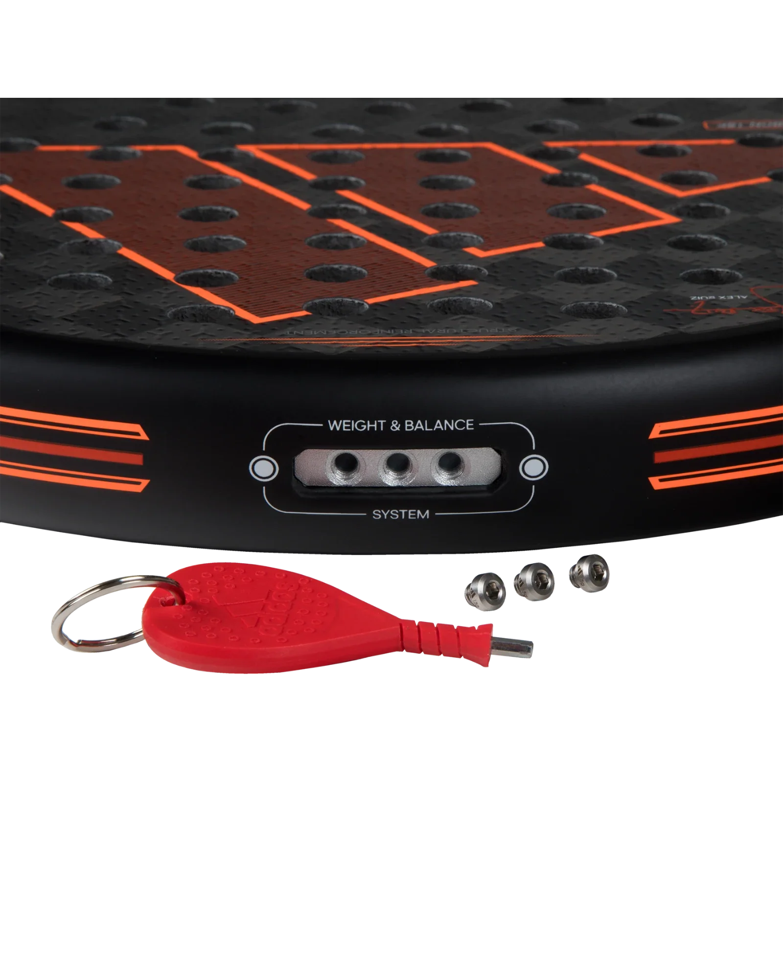 We find a multitude of technologies to get the maximum performance on the court such as the Dual Exoskeleton that reinforces the heart and frame of the racket and the most remarkable of this racket is the Weight & Balance System Multiweight technology, adjustable weight system in the rail and head of the racket.