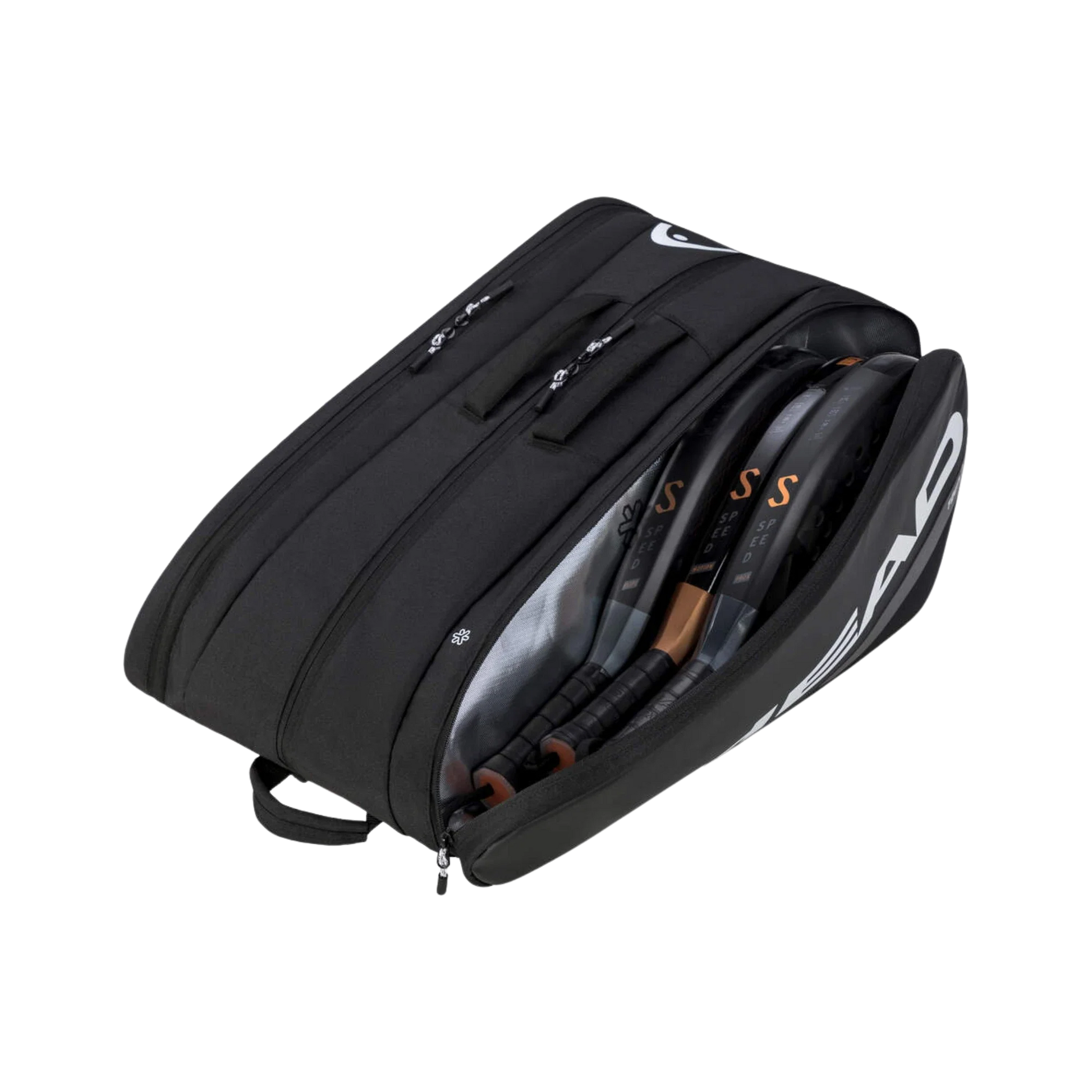 Style, space and innovative technology are combined in the Head Tour Padel Bag L BKWH. Offered in a choice of modern, stylish colorways, the bag has been upgraded with a new shape, new padding for extra stability and new top handles. You can carry up to seven racquets in a bag with three main compartments, one of which has CCT+ climate control technology to protect your racquets against extreme temperatures. In addition to an integrated shoe compartment for your footwear, the bag comes with inside and outside zipper pockets for your essentials. With its backpack carry system, you can carry this bag in comfort. As an illustration of how HEAD is trying to reduce plastic usage, the hangtag is made from recycled paper and tied with hemp cord, and the bag is presented in a new recycled plastic bag.