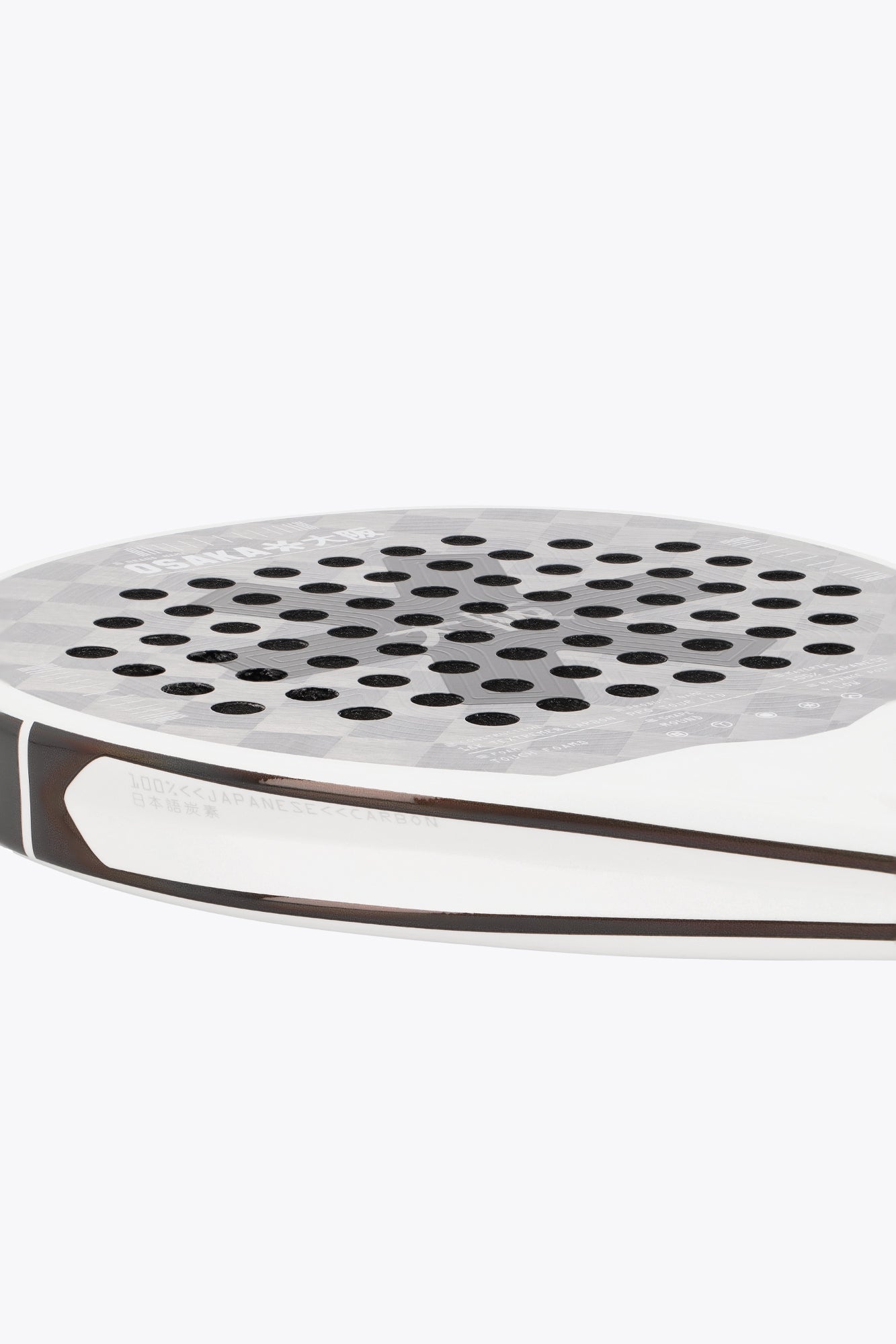 In addition to its performance features, The Pro Tour LTD Control racket features a sophisticated, high-end design that elegantly blends performance with style. Its surface showcases dark, subtle holographic foil that contrasts beautifully with the luminous white pearlescent ink, creating a striking visual effect. The glossy metallic 18K silver TEXTREME® Carbon finish enhances its premium feel while, the 3D raised branded print adds an extra layer of texture and depth. This thoughtful combination of materials ensures that the Pro Tour LTD Control is not only a high-performing racket but also a stunning piece that captures attention on the court.