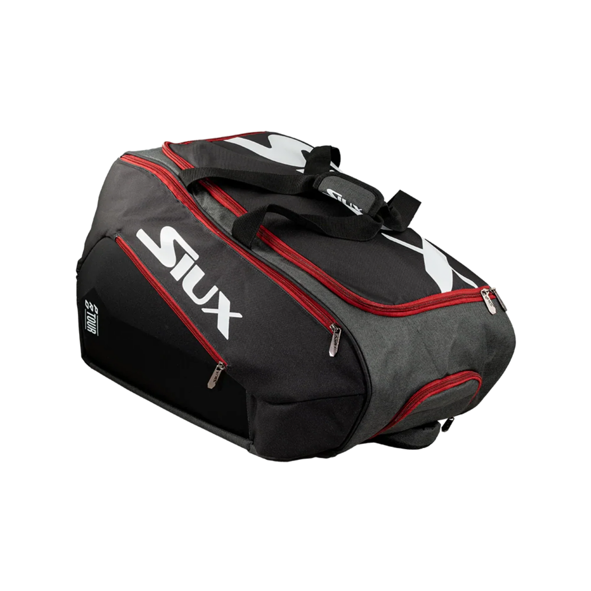 The Siux Pro Tour Bag is a medium-large padel bag designed for players who want to carry their gear comfortably and safely. It holds 2–3 rackets and features a well-ventilated shoe compartment to keep footwear separate and fresh.